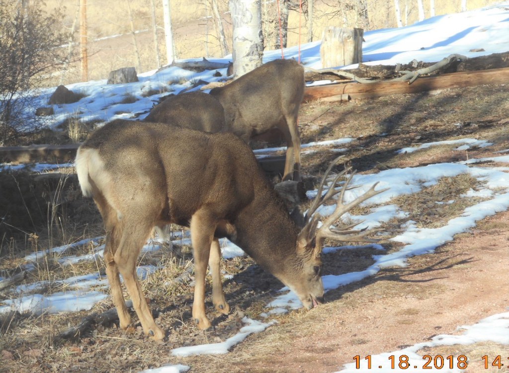 It was a cool yet sunny day. The afternoon hinted of a chill whispering upon the setting suns breeze. I was ready for the cool air about me however, with my short brown jacket. I busted out my front door set to go on my kindling shopping trip around our bare and grey aspen laden property. We love to burn the aspen in our wood burning stove since it burns cleaner than the pine. Each species of tree has it’s own beauty. The pine, and fur trees still holding fast their deep greens. The aspen’s now dormant for the winter exhibit a grey and white color with hints of black along their tall trunks that stand so tall and straight in the cool breeze. They stand alert and awaiting the time in which they will again welcome the fresh little bright green fragile, small leaves of spring. But for now, I collect my kindling for a nice warm fire before an oncoming storm. A couple of bags in hand I bumble out my front door and run right into my deer herd! I didn’t seem to startle them much. Perhaps they were too busy feeding before the storm as well, to worry much about me. They know me. They know that I am always collecting things off the ground. The buck was too interested in the doe that was coming up towards me. That is when it hit me. Was she trying to shake him off her tail quite literally? She got very close to me in fact and as she did so Mr. Buck decided he didn’t want to be so close to me. She’s a smart doe she is. She knows just how to shake him alright. So at that point I went off to work finding my fill of wood. As I worked my way down the property I started to feel as if I was being watched. I stood up and looked around, sure enough, there were about 8 tall fuzzy ears pointed towards me. The does had all figured out the best way to keep Mr. Buck from bothering them was to walk along with me. They had been traveling along with me the whole time! It was so cute to see the four beautiful does looking directly at me as if to be asking me, “what cha doin?” It’s hard to describe how deep the brown of their eyes is or how loving the gaze they have when they look at you. The furry brown and thick coats they have are so inviting that I wish I could reach out and pet them. Mr. Buck was still trying to figure out how to work out a deal with one of them. He was really feeling quite amorous. I needed to be a bit careful as I didn’t want to be mistaken as a doe of his, not with those horns of his. Yikes! Well, I had collected my fill and headed back to the house and funny enough, so did my herd of does. Of course, with Mr. Buck in tow. I spent a couple of hours mingling with this herd of deer. They were always within about ten feet of me. I can’t say for sure that Reiki energy helped to bring it about but it sure can help because Reiki brings a certain peaceful energy about a person and about a place. I got home feeling as though I just experienced a Magical journey with some special friends.