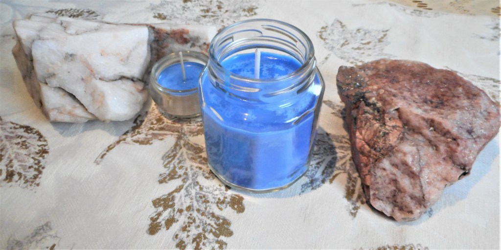 I love being able to offer folks the beautiful Quartz rocks, feldspar and quartz with tourmaline within it. These rocks hold healing properties to their holders. They are also pleasing to the eye. I made candles in the past and grew dispassionate with it since I live at an altitude that causes issues with air pockets between the glass and the wax but I will offer candles to those who are not bothered by slight imperfections. Candles are so important to those who meditate so they are offered for my dear clients.